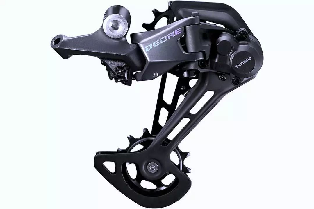Deore M6100 Shadow plus 12-speed rear derailleur for dependable shifting performance and durability.