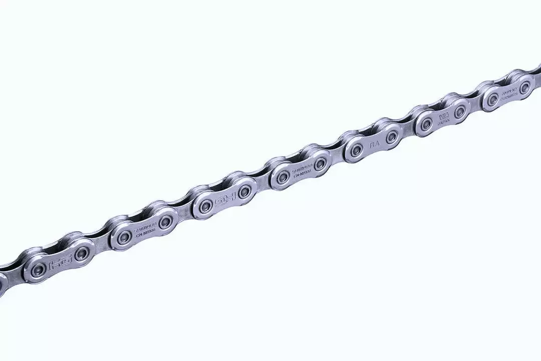Shimano 12-speed Hyperglide+ chains have computer designed plate profiles to operate seamlessly with Shimano DCE 12-speed chainrings and cassette sprockets, resulting in 1/3 faster shift time than Hyperglide systems even under load.