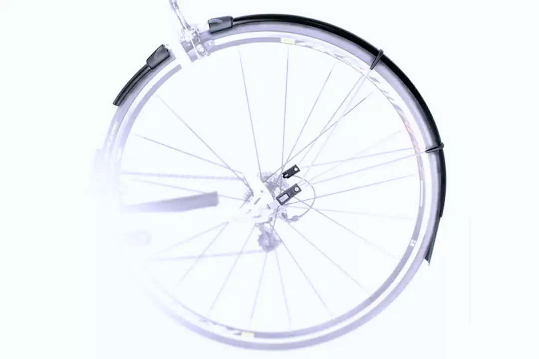 The end of each mudguard extends to below the hub axles. This length ensures a full coverage, meaning you, and also the cyclist behind you, are spared from splashing.