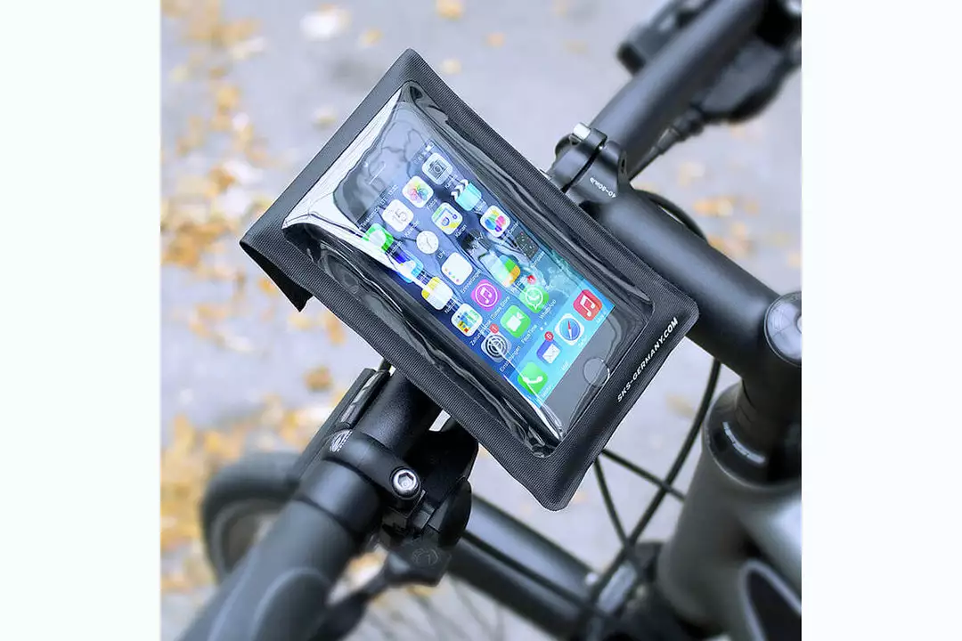 With this innovative mount you can fit your smart phone to the handlebar of your bike or pushchair without any tools in seconds! The waterproof plastic case keeps your smart phone dry and always in sight. It also features a transparent touch window for operating the display.