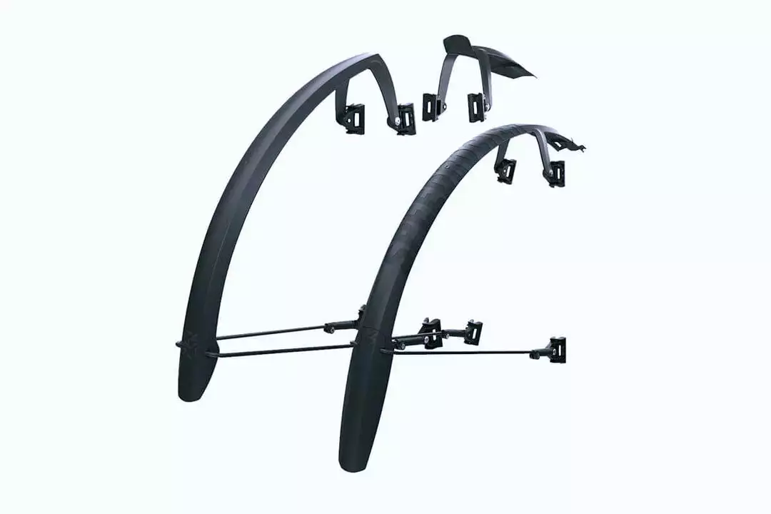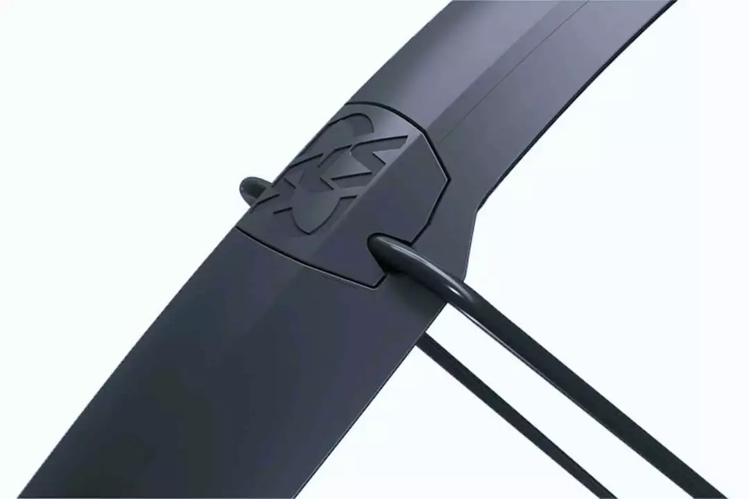 At the front, protection is enhanced with a new dual-height front spoiler, which deflects water and mud onto the wheel and downwards, away from the rider’s face. The rear mudguard utilises an innovative telescopic extension for greater coverage near the seat tube, and everything is held firmly in place with an all-new rubber fastening system to suit a multitude of frame designs, including integrated recesses for brake or gear cables as required.