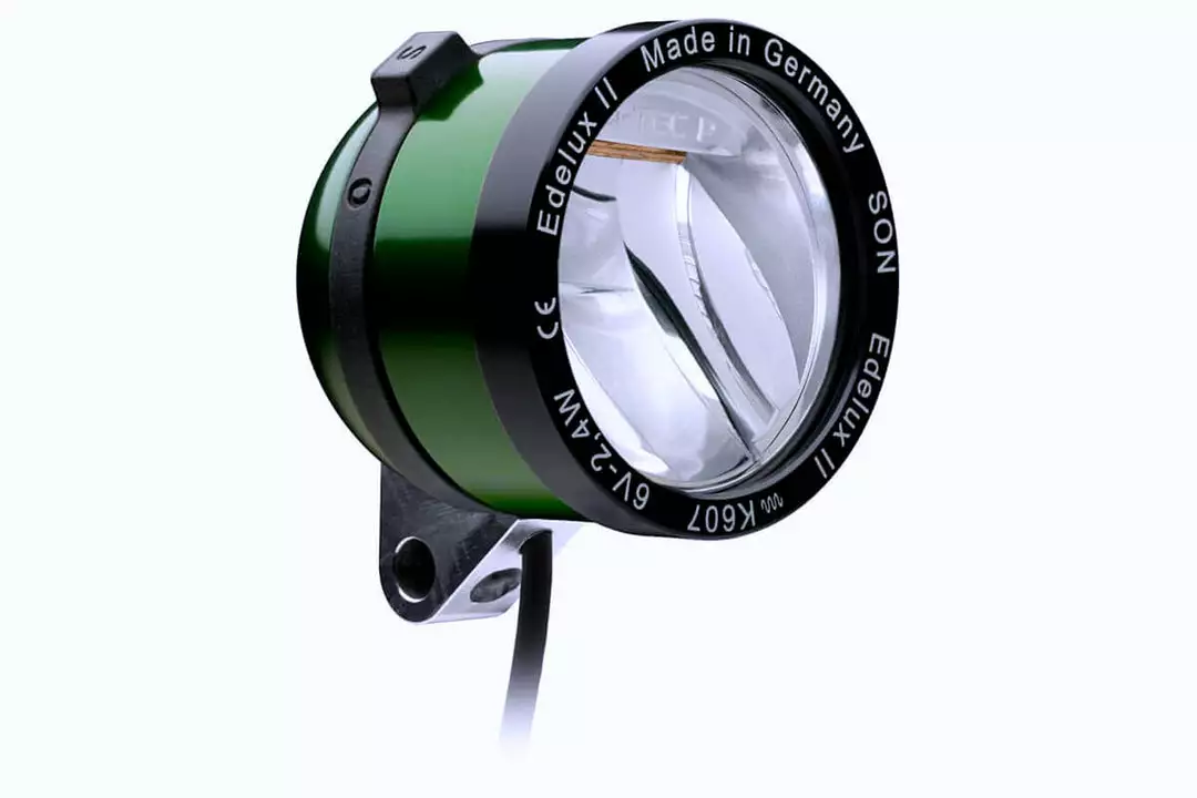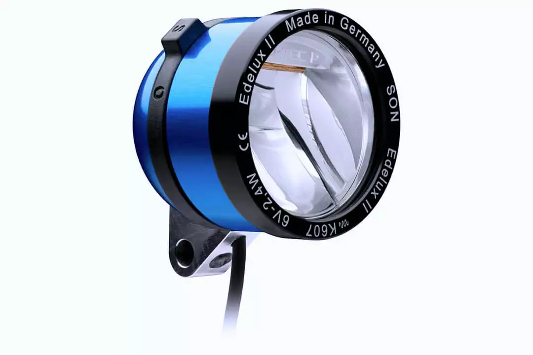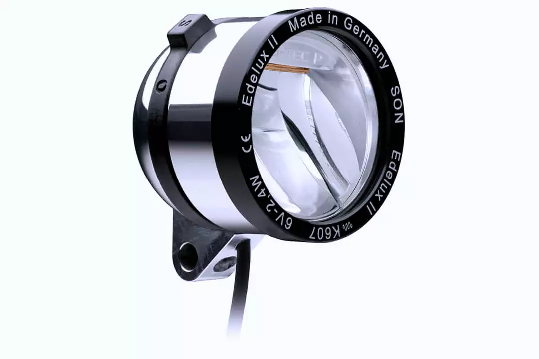 The Edelux II outshines his elder brother Edelux – with the latest LED technology and Busch and Muller’s new IQ-Tec Premium mirror design: the Edelux II light field is twice as wide and focuses at distances even better than the Edelux did. The near field of the Edelux II begins close to your front wheel and illuminates the road evenly. The Edelux II housing is of robust aluminum, closed up watertight with a scratch-proof, anti-reflective glass lens. It has an easy to use magnetic switching ring, even when wearing gloves. Connection to the hub dynamo is with the SON coaxial cable.