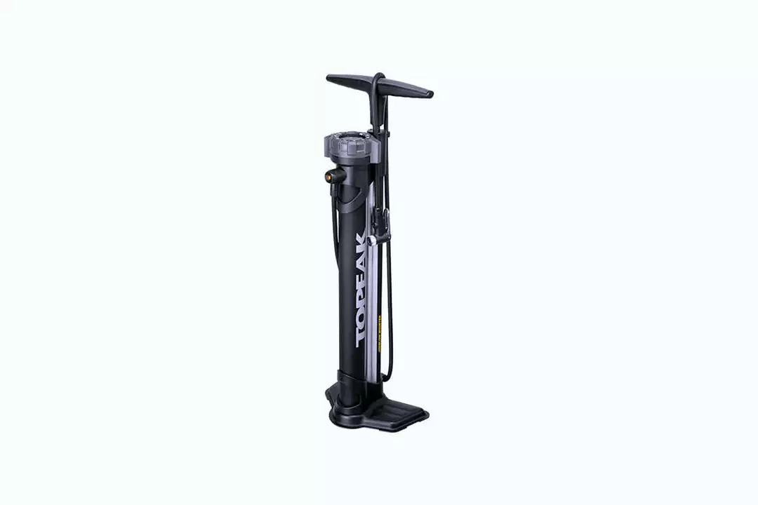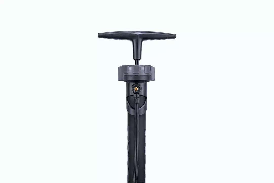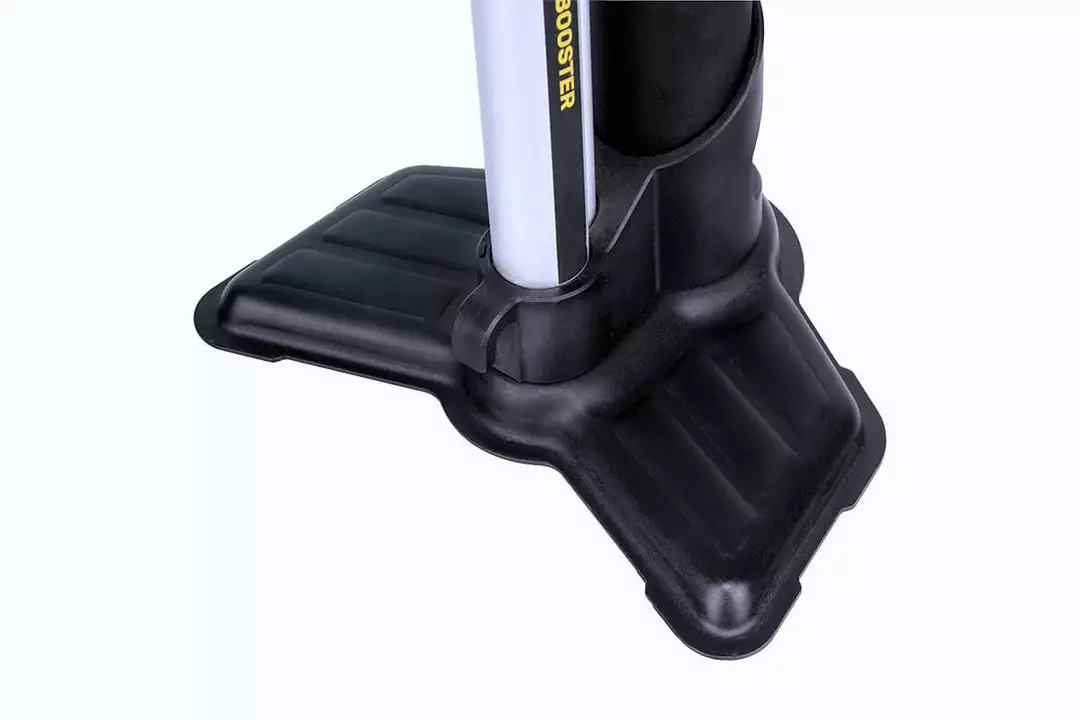 Half air compressor, half pump. The JoeBlow® Booster pump just made it easier to install tubeless tyres. This pump has an integrated aluminum air chamber that stores an air charge of one liter, up to 160psi / 11 bar, to quickly fill your tyre and ensure the proper installation on a tubeless rim, just like a shop compressor.