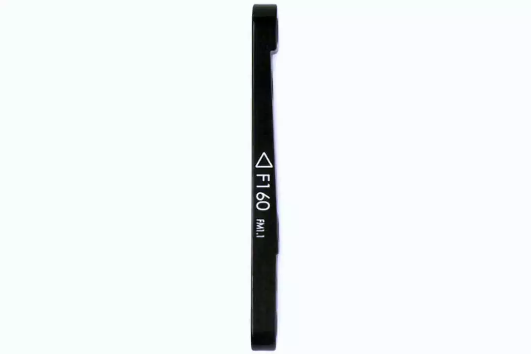 The front F5 adaptor must be used with a flat mount caliper on a flat mount fork. Mount one way for a 140mm rotor and reverse it for a 160mm rotor.