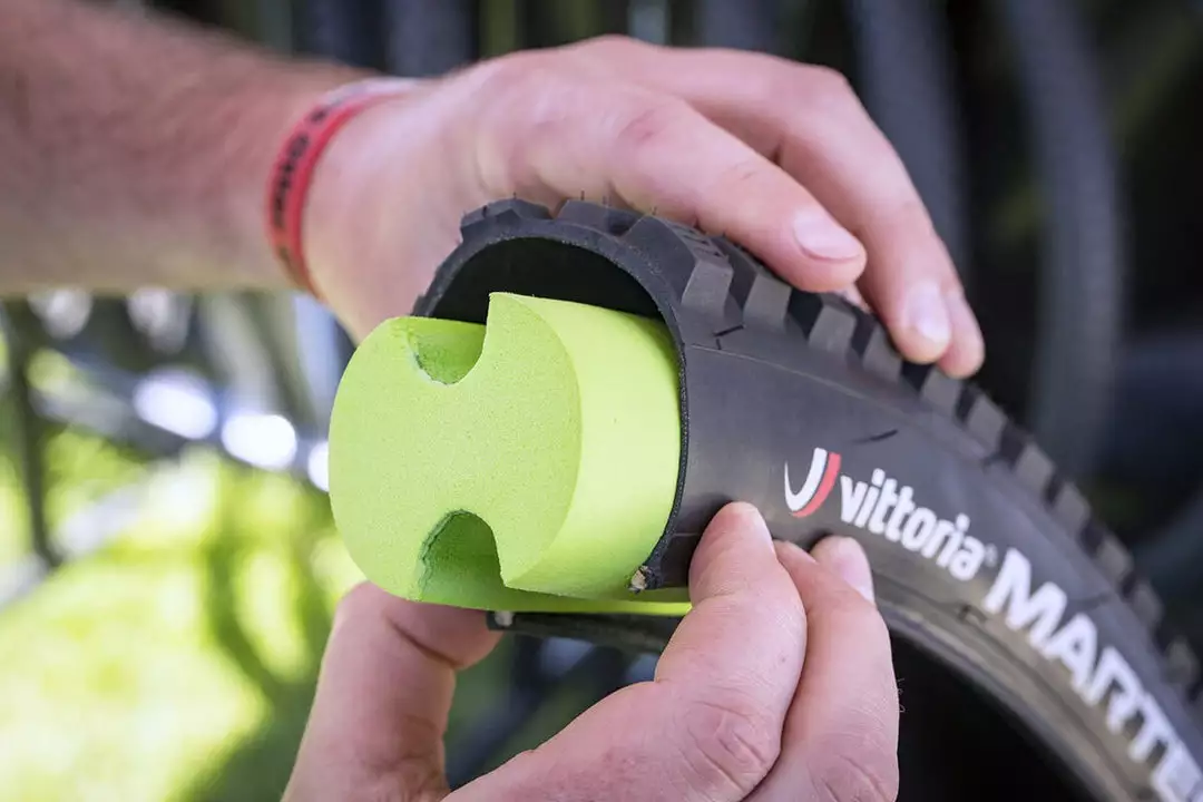 Control: Gravel Air-Liner replaces part of the air volume inside the tyre. The lower presence of air allows the tire to adhere better to the ground than a traditional tubeless system.