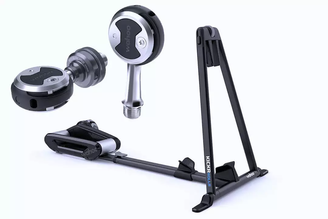 Wahoo Rollr Smart Trainer and Powrlink Left Sided Power Pedal bundle delivers Wahoo’s innovative power pedals with the Rollr system giving you the ability to track your fitness and power and use a realistic Rollr system.