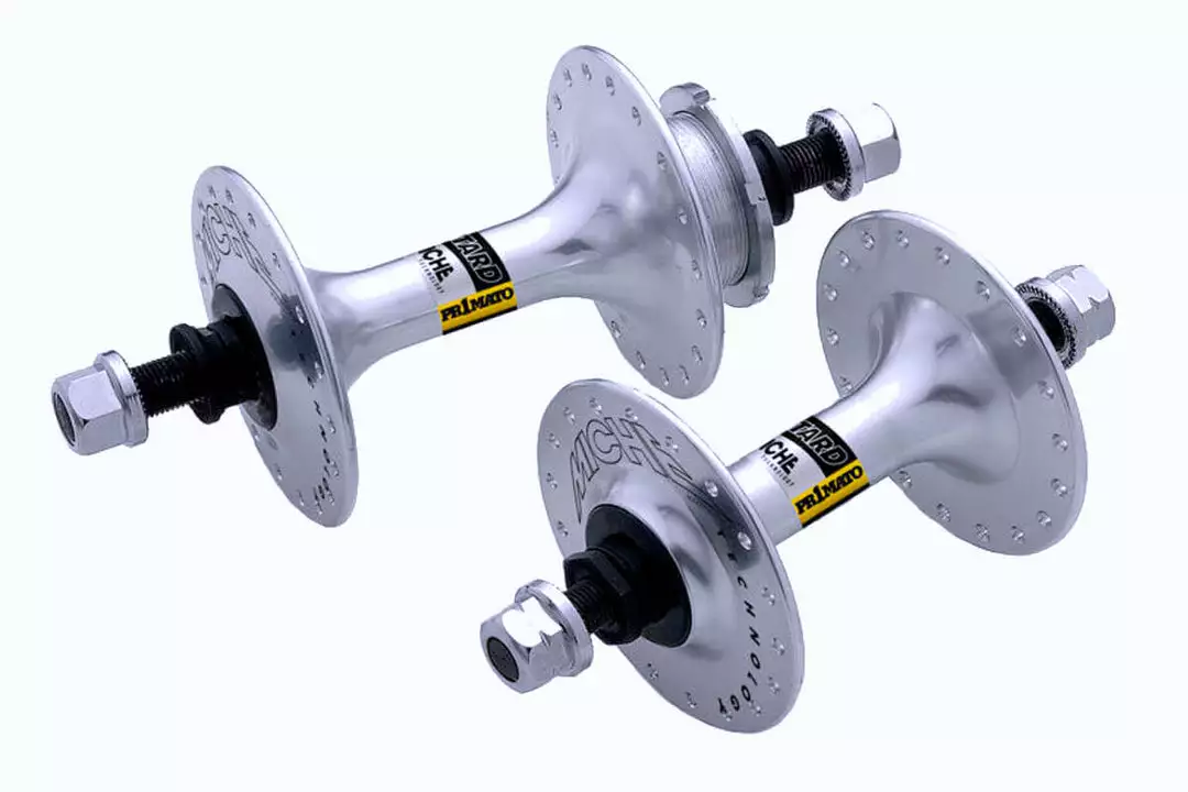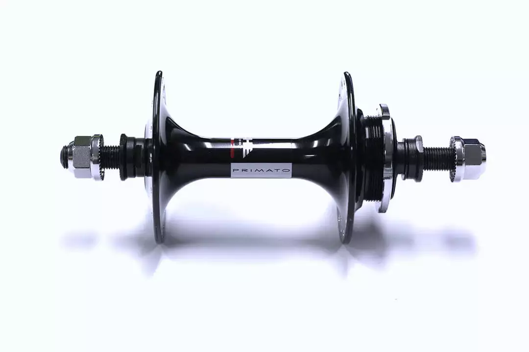 Superb performing Primato track hubs with large flanges. Comes with sealed bearing, drilling for 32 spokes and with axles of 100mm (front) and 122mm (rear).