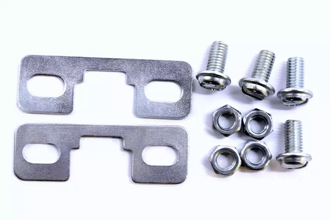 A set of four replacement bolts and spacer plates, which will allow the secure attachment of Zefal plastic toe clip cages to your pedals.